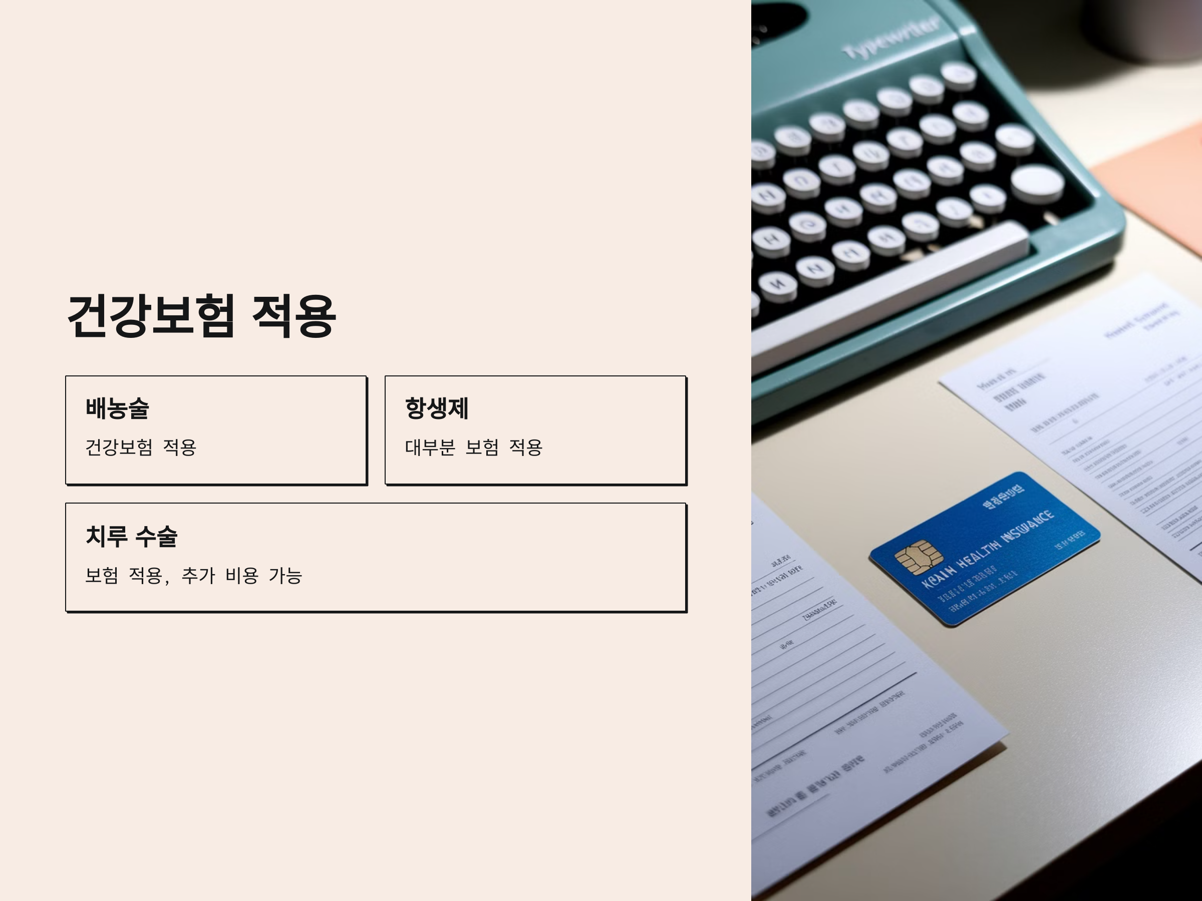 항생제 치료는 보조적인 치료로 사용되기 때문에, 처방받은 항생제의 비용은 대부분 건강보험이 적용됩니다. 그러나 항생제 치료만으로 완전한 치료가 이루어지지 않는 경우가 많아, 추가적인 수술이 필요한 경우에는 배농술이 시행됩니다. 이 경우 배농술에 대한 건강보험이 적용되므로, 환자는 부담 없이 치료를 받을 수 있습니다【8†source】【10†source】.