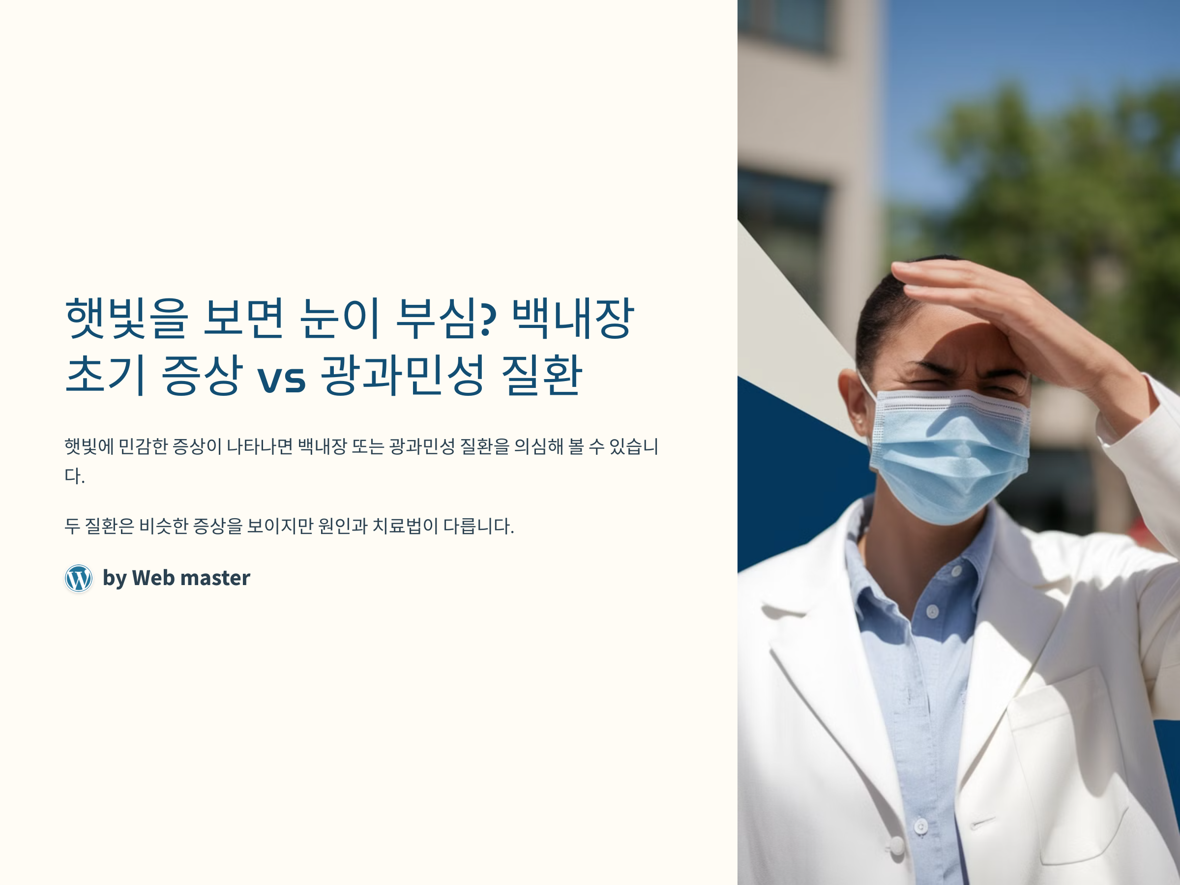 햇빛을 보면 눈이 부시고 불편함을 느끼는 사람이라면, 백내장 초기 증상이나 광과민성 질환을 의심할 수 있습니다. 이 두 가지 질환은 비슷한 증상을 보일 수 있지만, 정확히 어떤 차이가 있는지 알기 어려운 경우가 많습니다. 이를 구별하고, 어떻게 대처해야 할지 알아보는 것이 중요합니다. 이번 포스팅에서는 백내장과 광과민성 질환의 차이점, 증상, 그리고 적절한 치료 방법에 대해 자세히 다루겠습니다.