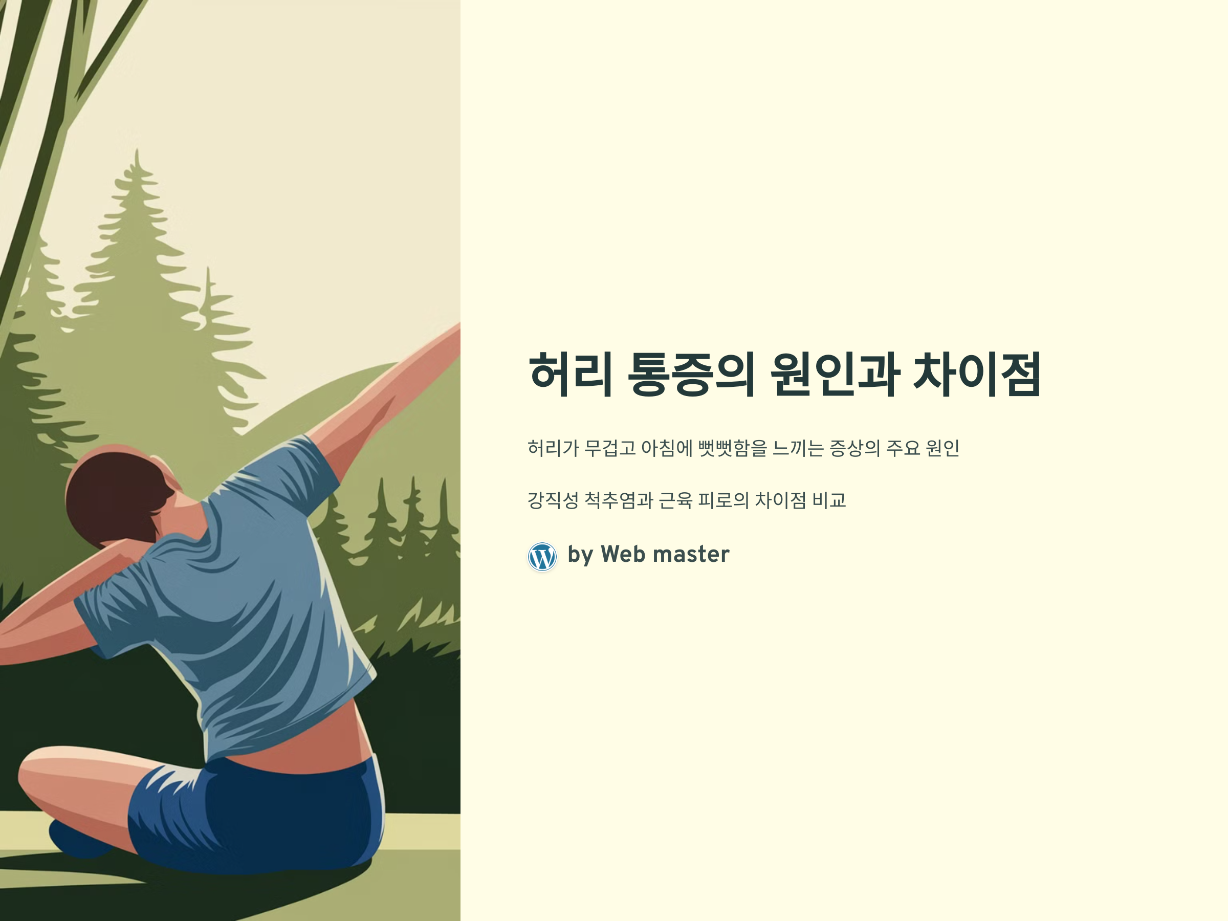 허리가 무겁고 아침에 뻣뻣한 증상은 강직성 척추염과 근육 피로 두 가지 원인으로 발생할 수 있습니다. 강직성 척추염은 만성 염증성 질환으로, 장기적인 관리와 치료가 필요합니다. 반면, 근육 피로는 과도한 활동이나 잘못된 자세로 인해 발생하며, 휴식과 스트레칭으로 회복 가능합니다. 이 두 가지 증상을 구별하여 적절한 치료 방법을 선택하는 것이 중요합니다.