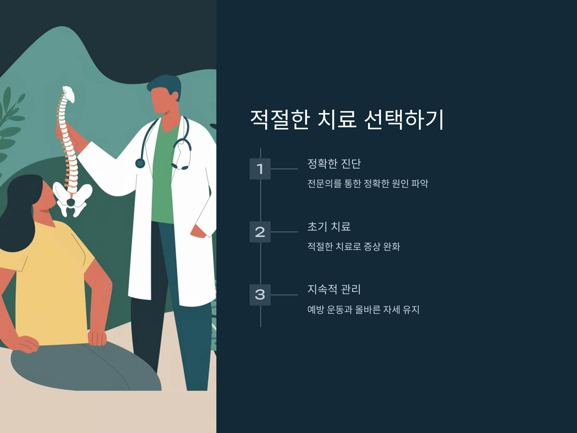 척추관 협착증의 치료 방법으로는 물리치료, 약물치료, 그리고 심각한 경우에는 수술적인 방법도 고려될 수 있습니다. 하지만, 초기 단계에서 적절한 관리와 치료를 받으면 수술 없이 증상 완화가 가능합니다.