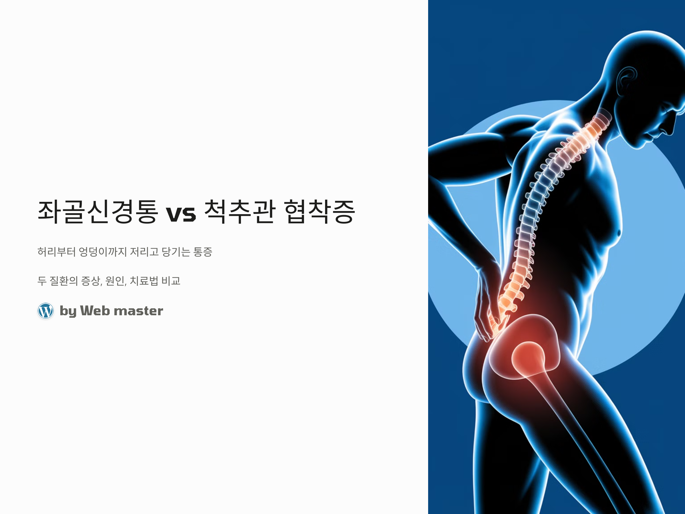 좌골신경통은 주로 신경 압박에 의해 발생하는 통증이며, 척추관 협착증은 척추 속의 신경이 눌려서 발생하는 질환입니다. 이 두 질환은 허리에서 엉덩이, 다리로 이어지는 통증이 공통적으로 나타나지만, 그 원인과 통증의 양상은 다릅니다. 최신 연구에 따르면, 좌골신경통의 경우 신경의 염증이나 압박이 주요 원인으로, 척추관 협착증은 노화나 외상으로 인한 척추관의 좁아짐이 주요 원인입니다.