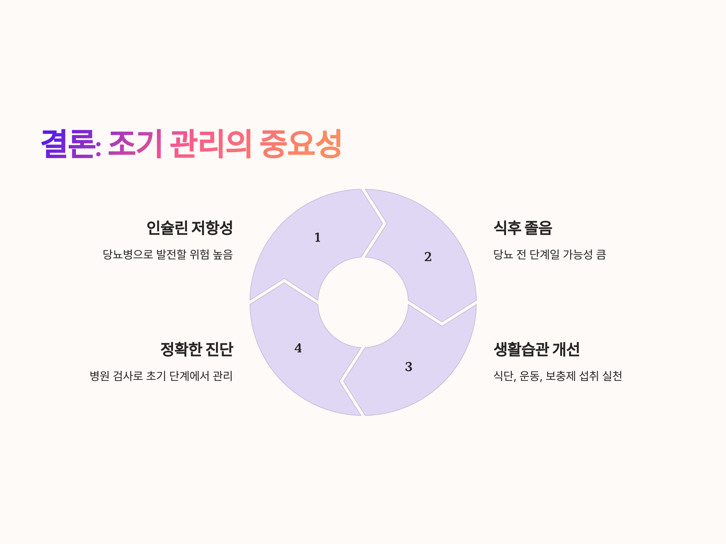 결론적으로, 인슐린 저항성은 당뇨병으로 발전할 위험이 높은 상태이므로 미리 관리하는 것이 중요합니다.