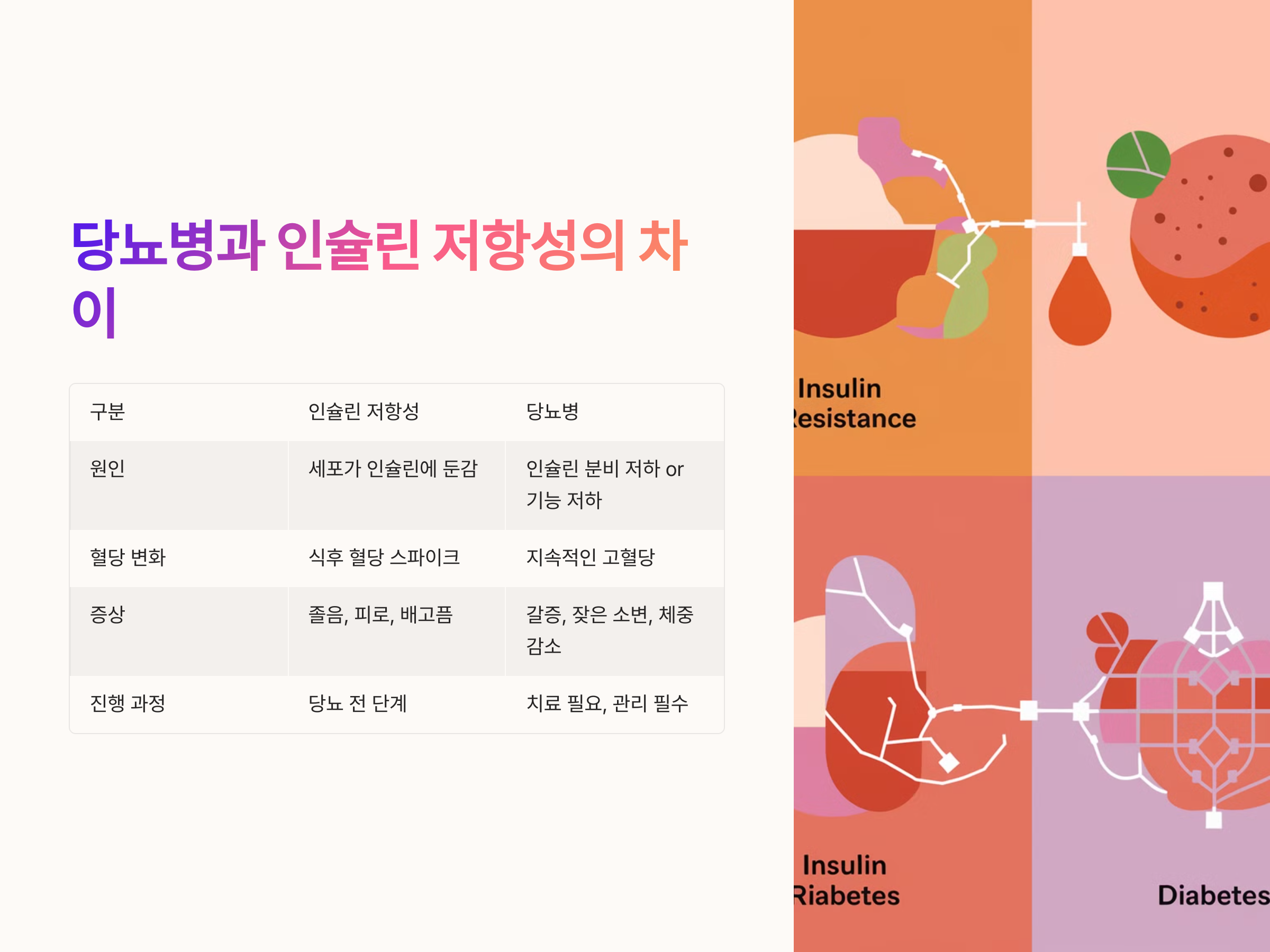 즉, 인슐린 저항성은 당뇨병의 전 단계일 수 있으며, 조기에 관리하면 예방이 가능합니다.