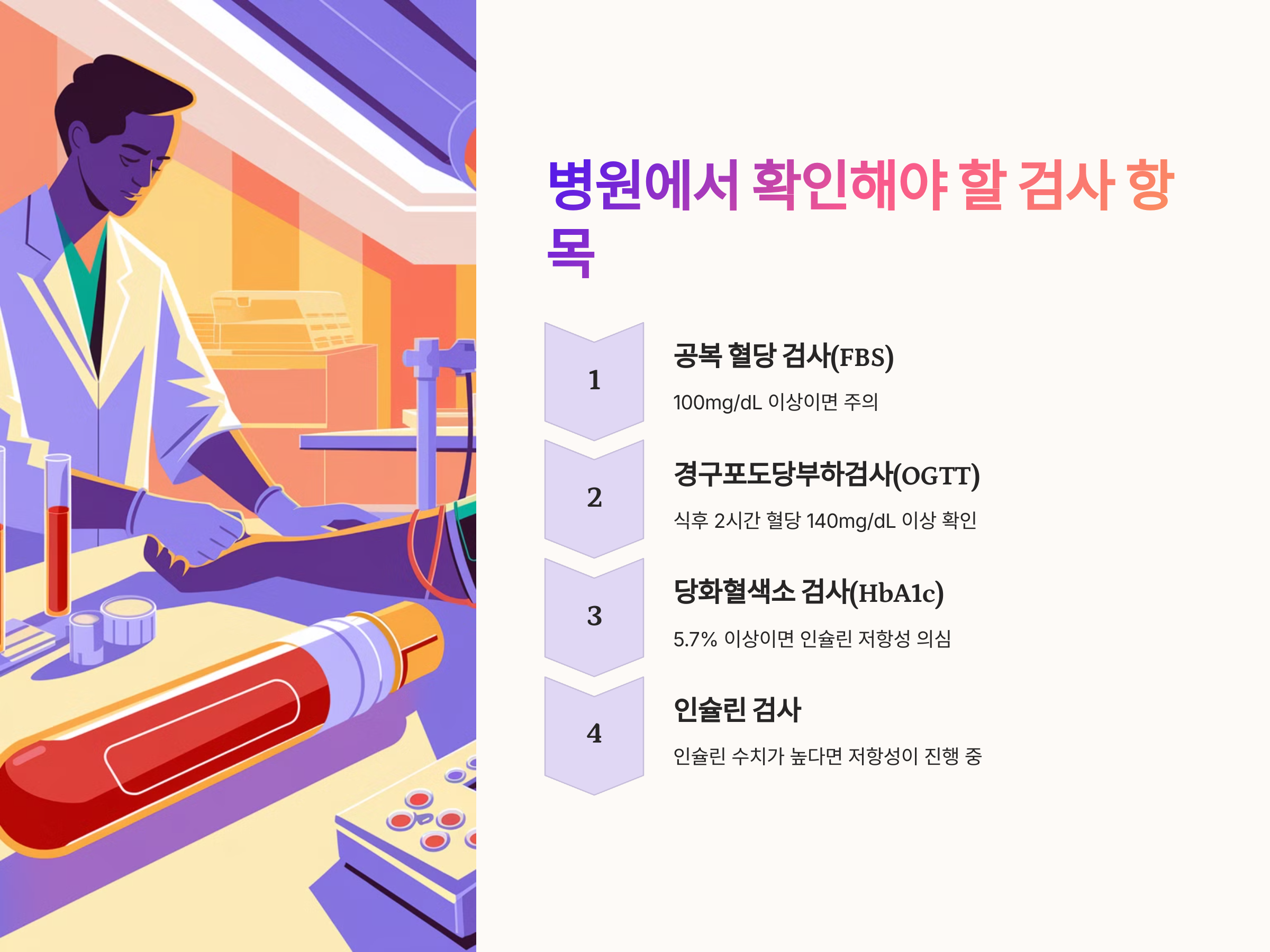 ✅ 당화혈색소 검사(HbA1c) - 5.7% 이상이면 인슐린 저항성 의심