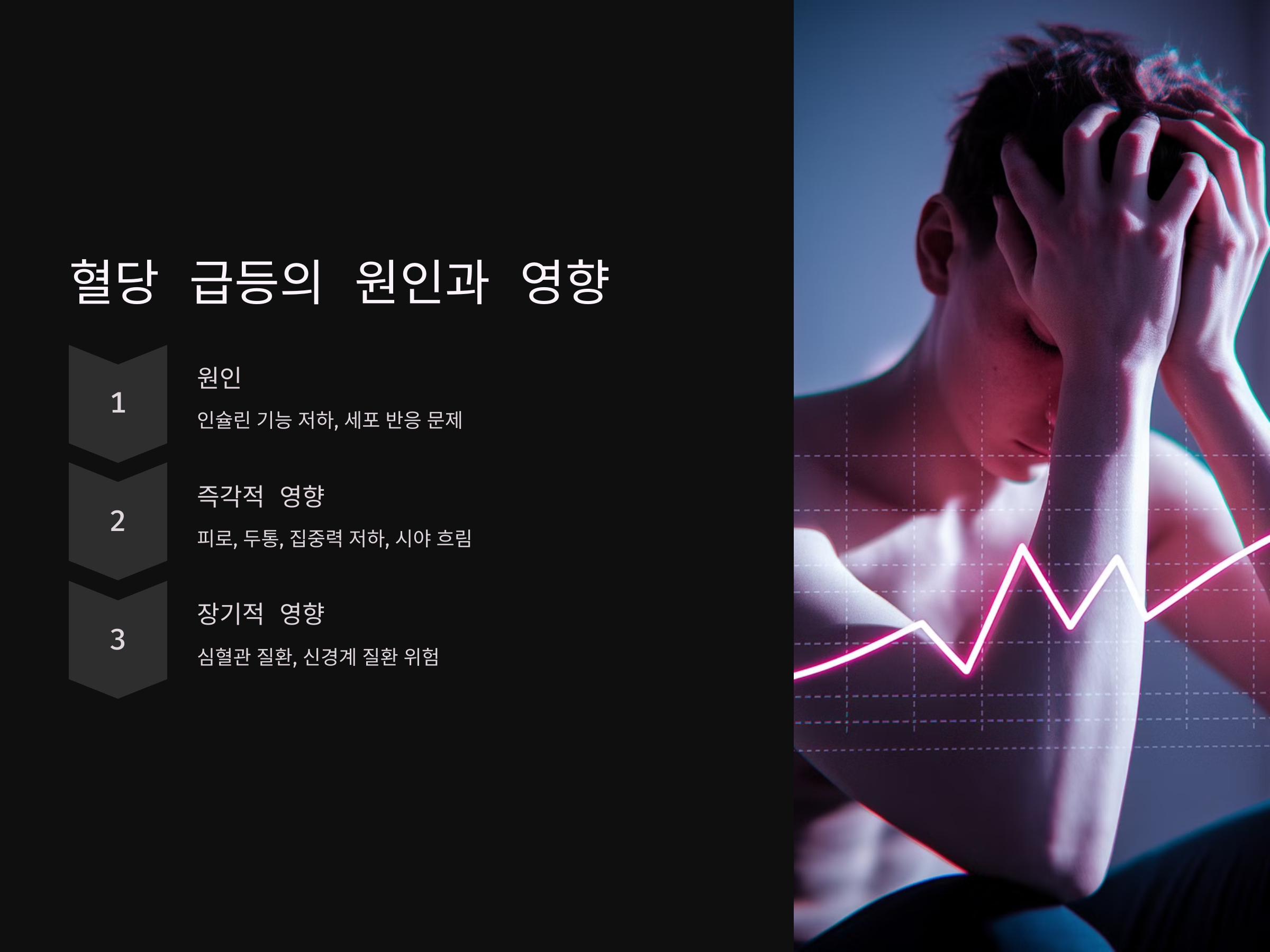 특히, 혈당 급등은 장기적으로 심혈관 질환이나 신경계 질환을 일으킬 수 있기 때문에 더욱 주의가 필요합니다.