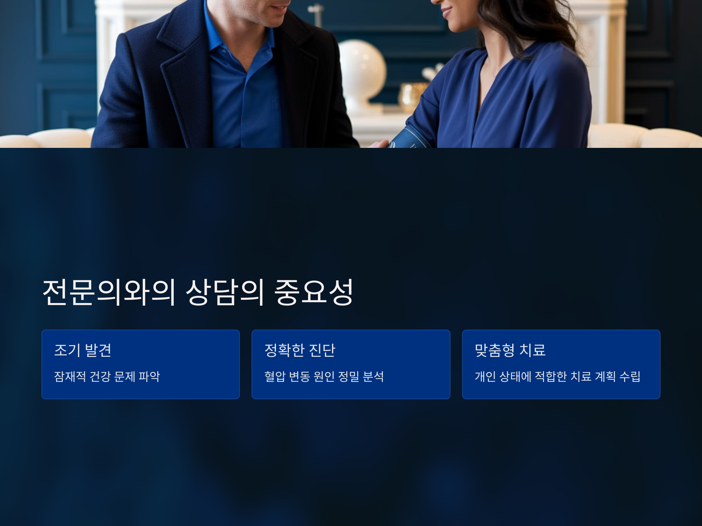 혈압 변동이 지속되거나 악화되는 경우, 전문의와의 상담을 통해 정확한 원인을 파악하고 적절한 치료 계획을 수립하는 것이 중요합니다. 이는 부정맥, 신장 질환 등 잠재적인 건강 문제를 조기에 발견하고 관리하는 데 필수적입니다.