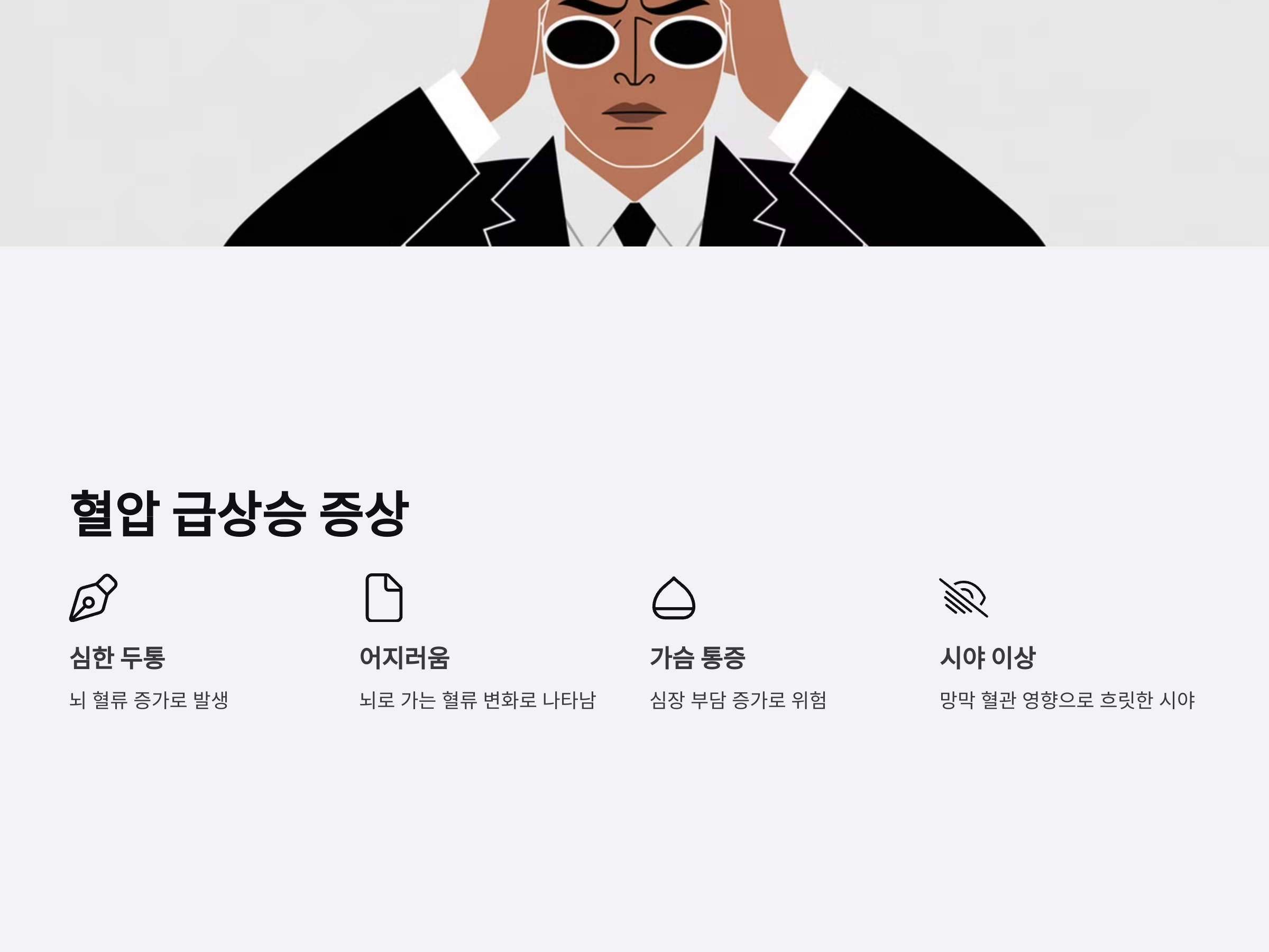 - 호흡 곤란: 혈압 상승으로 심장이 부담을 받음