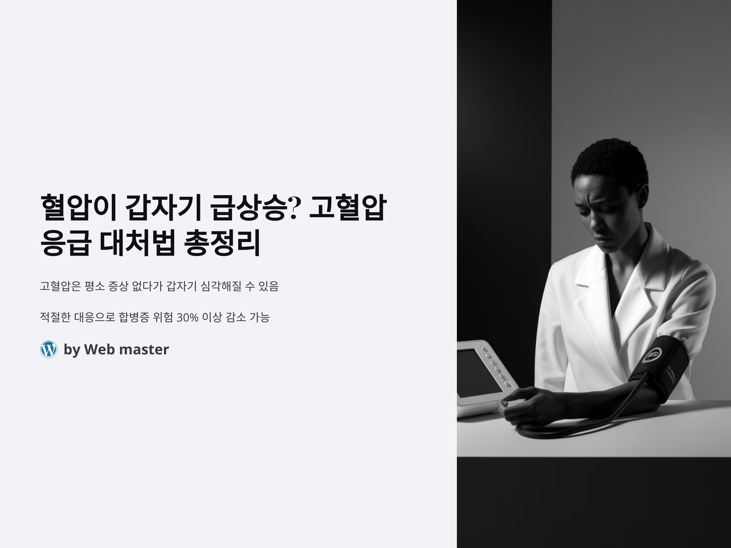 고혈압은 평소에는 증상이 없다가 갑자기 심각한 상태로 이어질 수 있는 질환입니다. 특히 혈압이 급상승하면 뇌졸중, 심장마비, 신부전 등의 치명적인 합병증을 초래할 수 있습니다. 따라서 혈압이 갑자기 높아졌을 때 올바르게 대처하는 방법을 알고 있어야 합니다. 최근 연구에 따르면, 응급 상황에서 적절한 대응을 하면 합병증 위험을 최대 30% 이상 줄일 수 있다고 합니다. 이번 글에서는 혈압 급상승의 원인과 응급 대처법, 그리고 장기적인 관리 방법까지 자세히 알아보겠습니다.