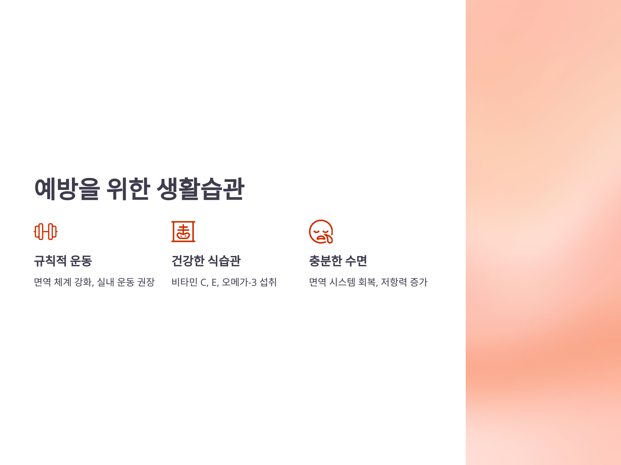 호흡기 알레르기 증상은 일상생활에 불편을 초래하지만, 이를 예방하고 관리할 수 있는 방법은 다양합니다. 알레르기 유발 물질을 피하고, 실내 환경을 청결하게 유지하며, 적절한 약물 치료와 생활습관을 통해 증상을 완화할 수 있습니다. 건강한 생활을 위한 작은 변화가 호흡기 알레르기를 관리하는 데 큰 도움이 될 것입니다.