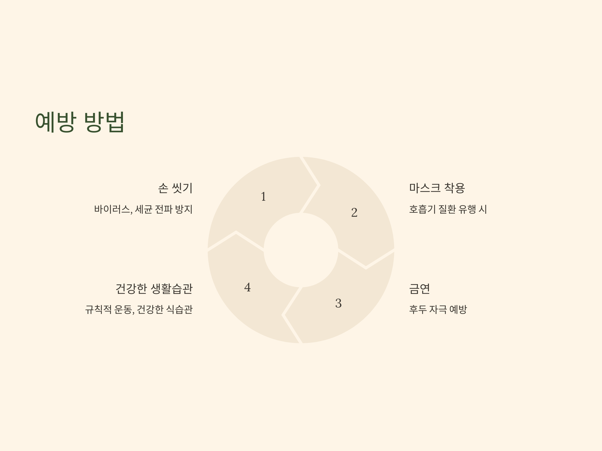 - 손 씻기: 바이러스나 세균이 손을 통해 입이나 코에 전파될 수 있으므로, 자주 손을 씻는 것이 중요합니다.
