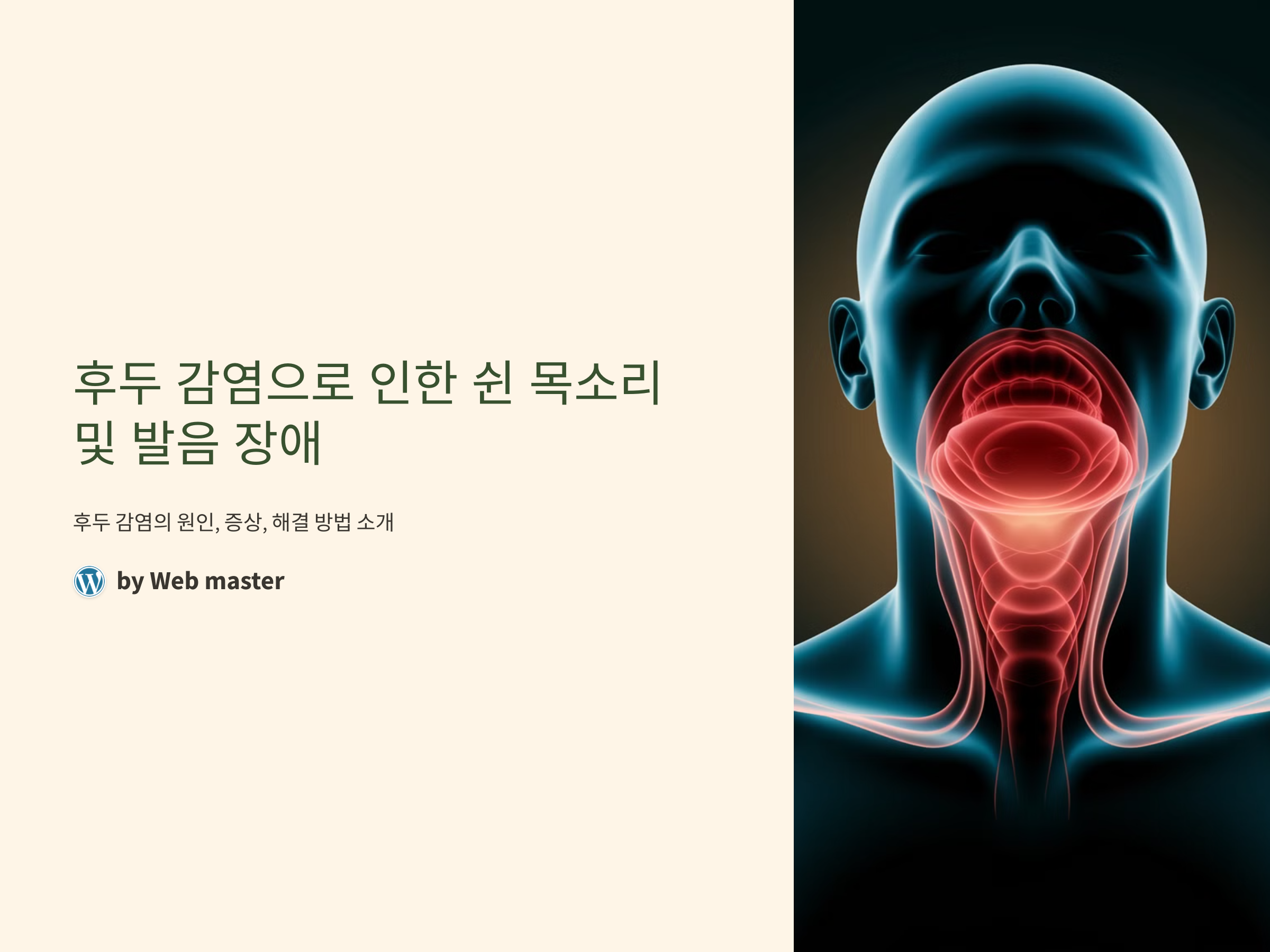후두 감염은 쉰 목소리와 발음 장애를 일으킬 수 있는 일반적인 건강 문제입니다. 이를 해결하기 위해서는 적절한 치료와 관리가 필요하며, 무엇보다도 예방이 중요합니다. 건강한 생활습관과 올바른 목소리 사용 습관을 유지한다면 후두염을 예방하고, 만약 증상이 발생했다면 빠르게 대응하여 회복할 수 있습니다.
