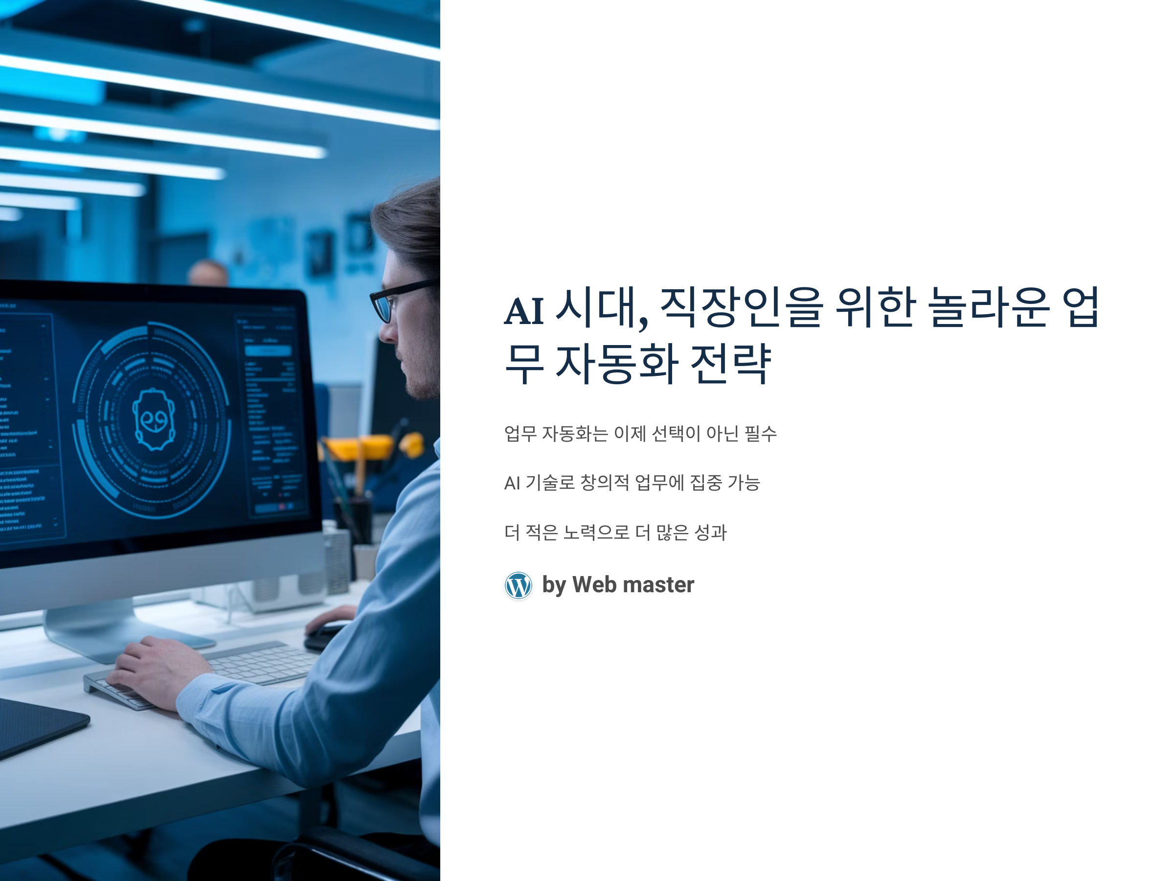 업무 자동화는 이제 선택이 아니라 필수입니다. 특히 AI 기술이 빠르게 발전하면서, 단순 반복작업에서 벗어나 창의적이고 전략적인 업무에 집중할 수 있는 환경이 마련되고 있습니다. 오늘은 2025년 기준, 최신 AI 툴과 자동화 워크플로우를 활용해 직장인이 ‘더 적은 노력으로 더 많은 성과’를 내는 실질적인 방법을 소개합니다. 실제 활용사례와 함께 수익화, 시간절약, 협업 효율성까지 높이는 전략을 다루며, 현재 트렌드에 기반한 인사이트를 제공합니다.