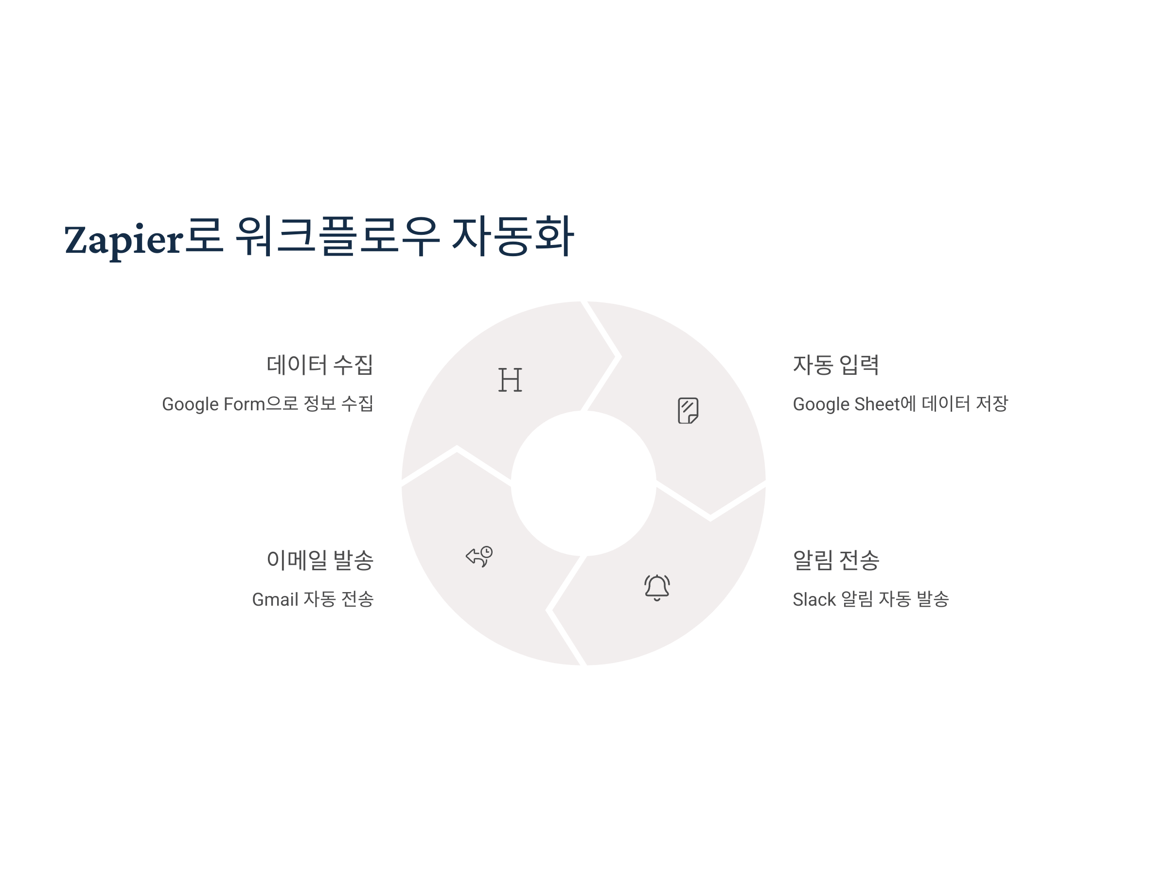 Zapier는 각종 웹서비스를 연동해 반복 업무를 자동화할 수 있는 대표 툴입니다. 예를 들어, Google Form으로 수집된 고객정보가 자동으로 Google Sheet에 입력되고, 동시에 Slack 알림과 Gmail 전송이 이루어지는 워크플로우를 ‘노코드’로 구현할 수 있습니다.