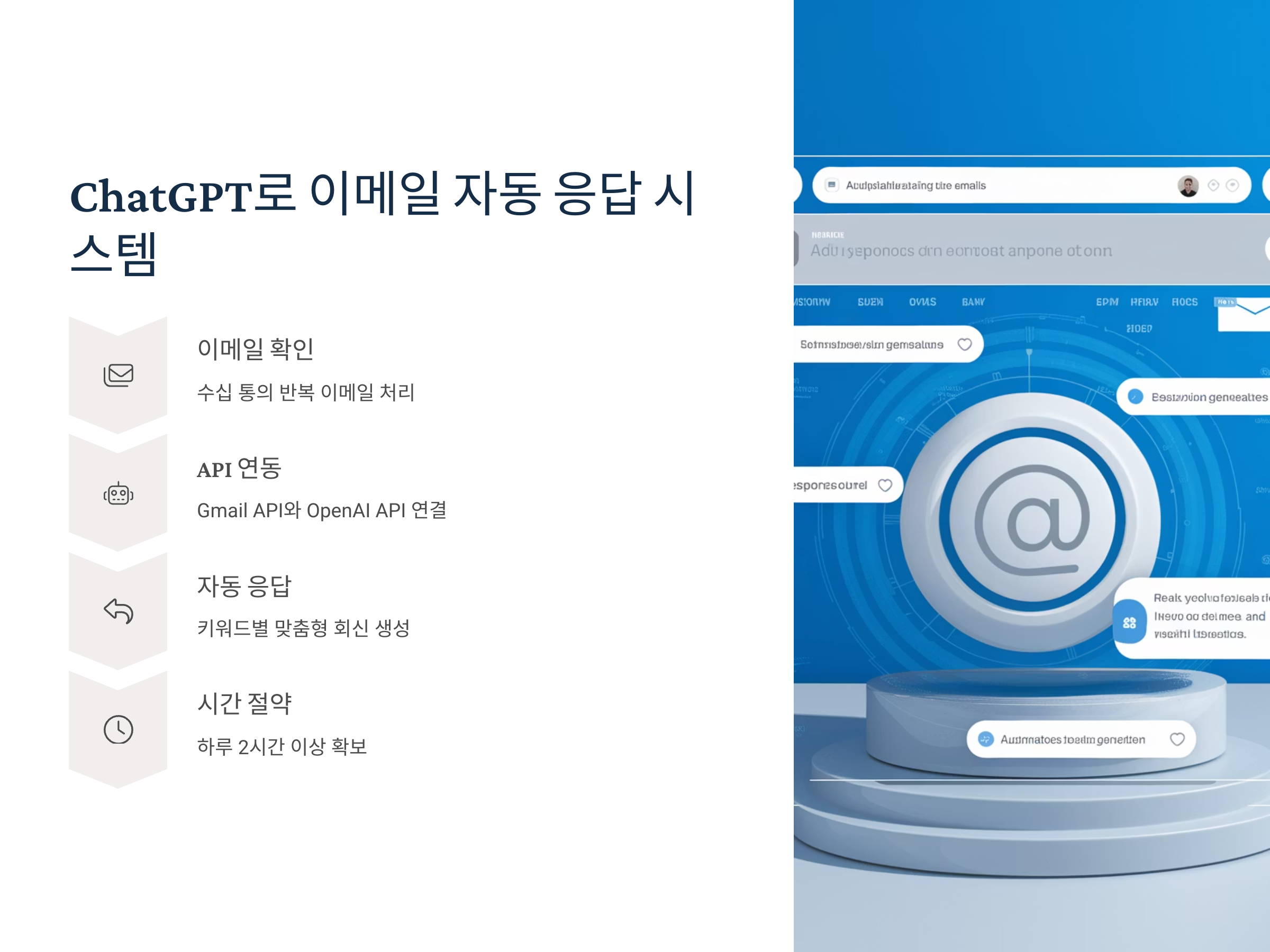 많은 직장인이 가장 많이 소비하는 업무시간 중 하나는 이메일 확인과 회신입니다. 하루에 수십 통의 이메일을 주고받으며 반복되는 내용과 포맷으로 회신하는 것은 시간이 아깝습니다. 여기서 ChatGPT를 활용한 자동 응답 시스템은 그 시간을 대폭 줄여줍니다.