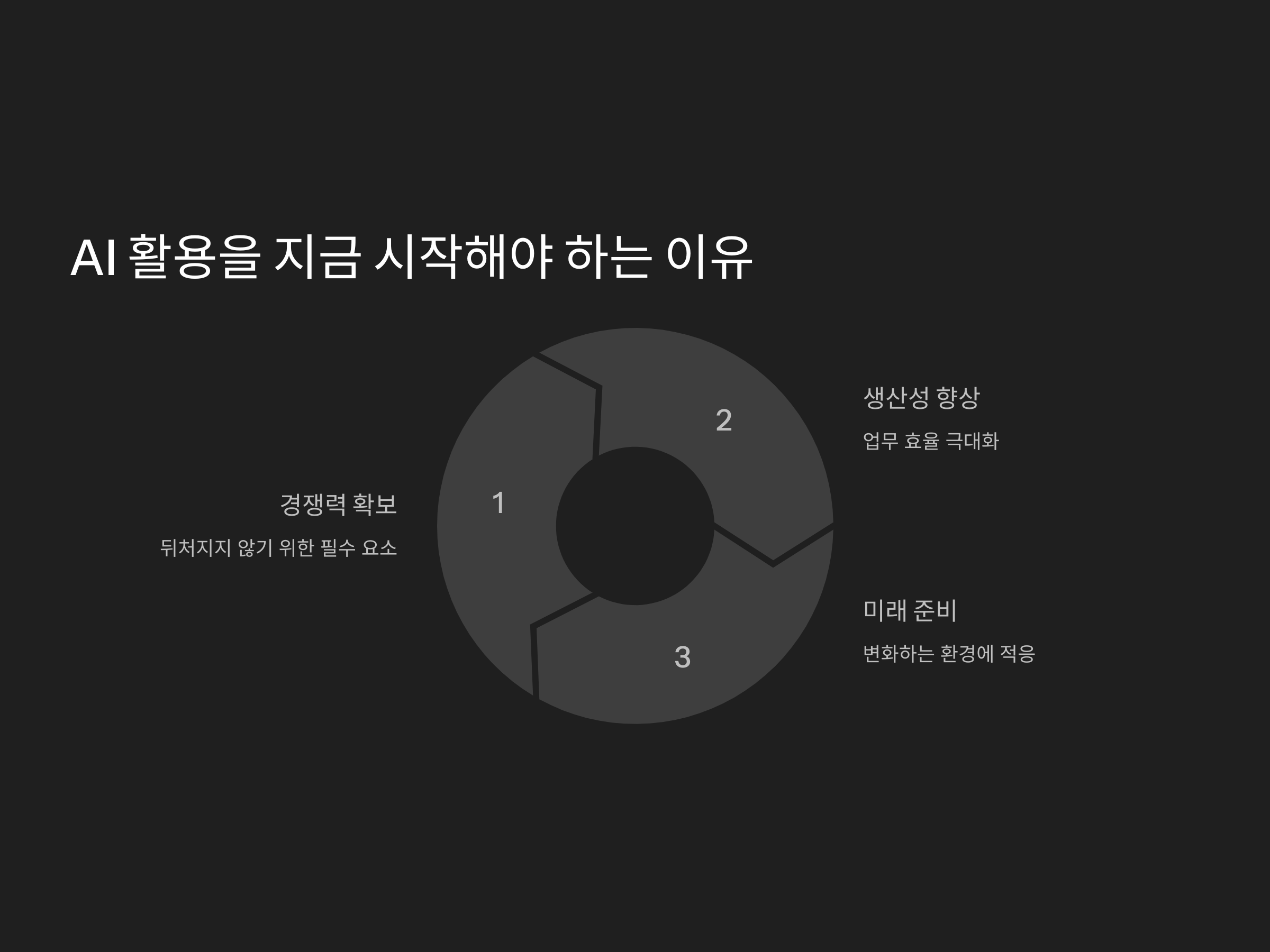 이처럼 AI를 적극적으로 활용하면 업무 속도를 향상시키고 효율성을 극대화할 수 있습니다.